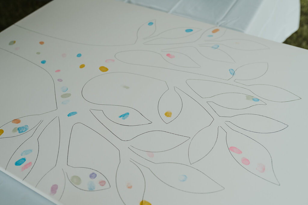 - Les jeux qui vont vous servir de souvenir de votre mariage comme un arbre d’empreinte par exemple, ou une fresque collaborative. Un moyen pour vous d’avoir un souvenir de tous vos invités en ce jour si particulier et pour tous de laisser leur empreinte dans ce mariage !