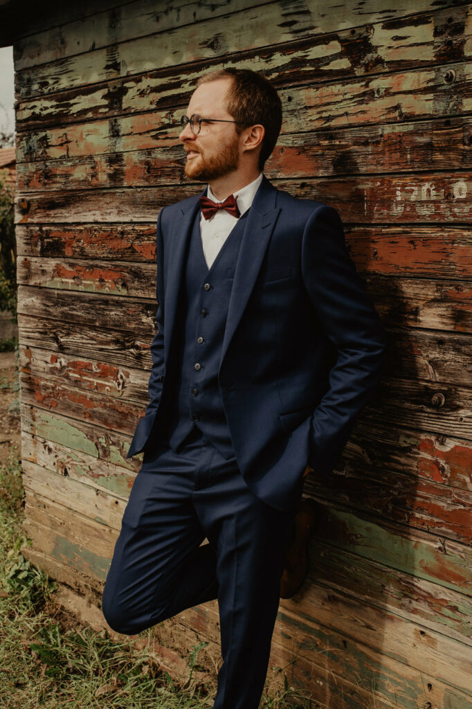 NON ! Bien évidemment que non. Le marié doit se sentir à l’aise. Si l’homme n’a pas l’habitude ou n’est pas confortable dans un costume, pourquoi le  » déguiser  » ? Selon le thème du mariage, un marié avec une veste en cuir et des petites bottes en cuir peut être CANON ou alors suivre vos traditions culturelles et mettre un kilt !  Ce serait un superbe clin d’oeil à vos origines!  Il est important de se ressembler le jour J !