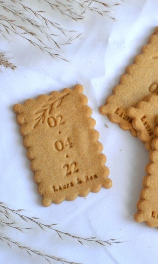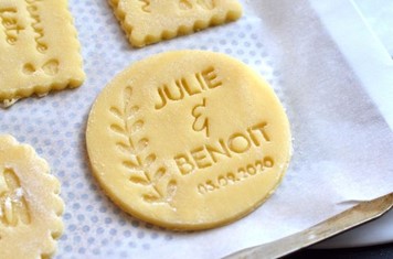 On dit souvent que la gourmandise est un vilain défaut… et si on inversait la tendance avec ces cadeaux invités ? Vous pouvez cuisiner des petits gâteaux et les personnaliser avant la cuisson avec un tampon avec vos prénoms ou la date de votre mariage par exemple !