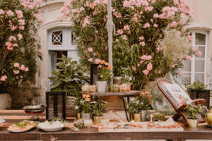 Avec un thème écologique, vous l’aurez deviné, il faut s’appuyer sur la nature! Beaucoup de matières naturelles brutes, et beaucoup de verdure. Cela permet un look de campagne et est très d’actualité. Non seulement cela peut permettre de faire des économies, mais vous pourrez emprunter des éléments ou même les réutiliser à l’avenir. Ici également, on retrouve beaucoup de beiges, de feuillage et de couleurs neutres. Avec beaucoup de domaines en pleine nature, c’est un thème de mariage idéal pour Toulouse!