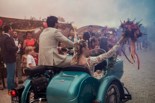 L’arrivée en scooter ou en vélo à votre mariage offre une alternative chic qui peut ajouter une touche de spontanéité et de charme à votre journée spéciale. En effet, cette option de transport apporte une atmosphère décontractée et joyeuse à votre mariage. Elle permet de profiter pleinement du trajet vers le lieu de la cérémonie tout en admirant les paysages environnants.