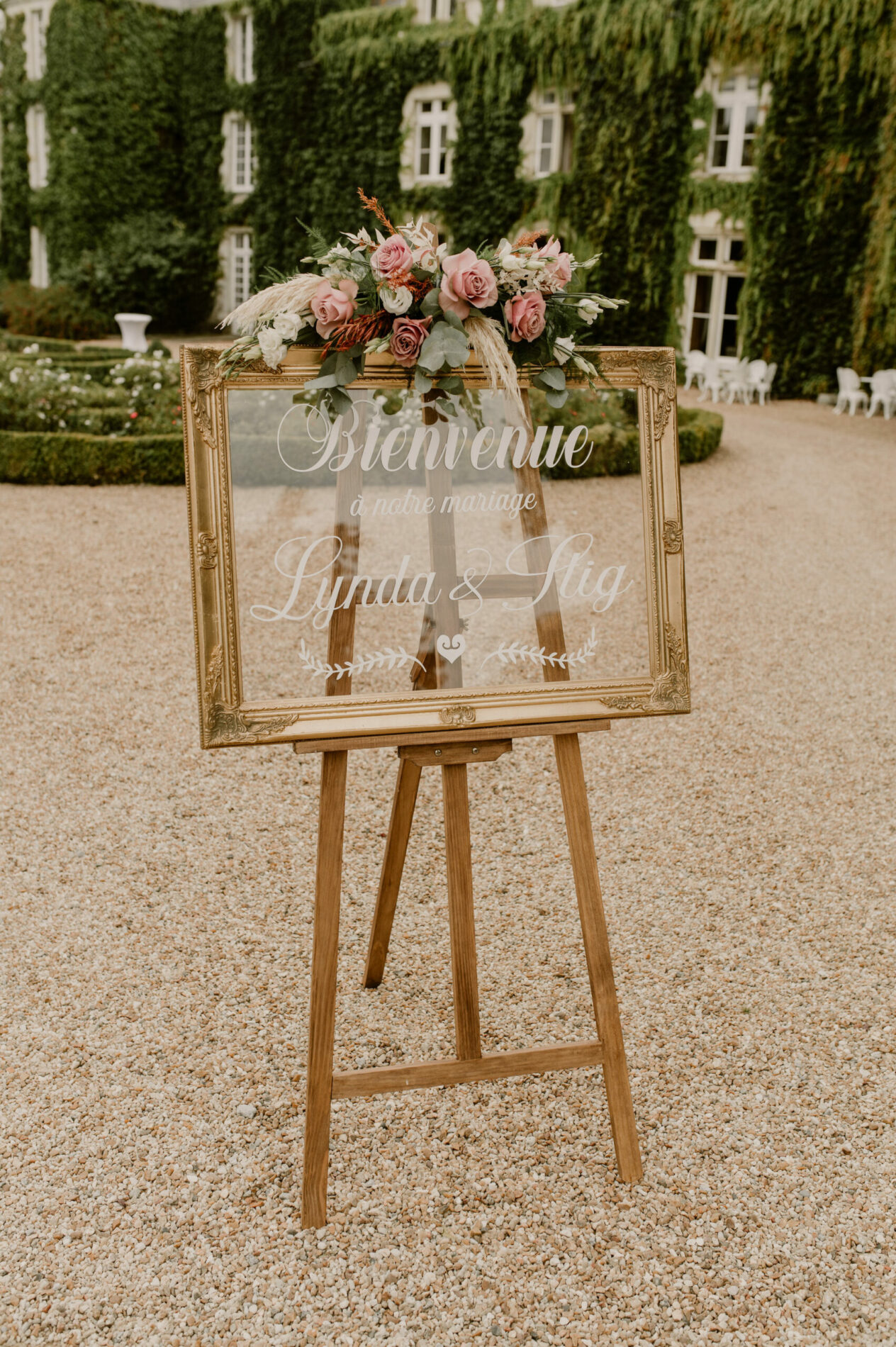 D DAY WEDDING PLANNER NEVERS vous conseille de faire un croquis détaillé du lieu de réception dans le but de déterminer les différents espaces à décorer. Pour commencer la décoration de votre mariage, on passe par l’entrée du lieu de réception : avec un panneau de Bienvenue. Pour agrémenter ce panneau, vous pouvez ajouter des fleurs autour du panneau et des lanternes avec des bougies, des caisses en bois ou encore des dames jeannes avec de l’herbe à pampa.