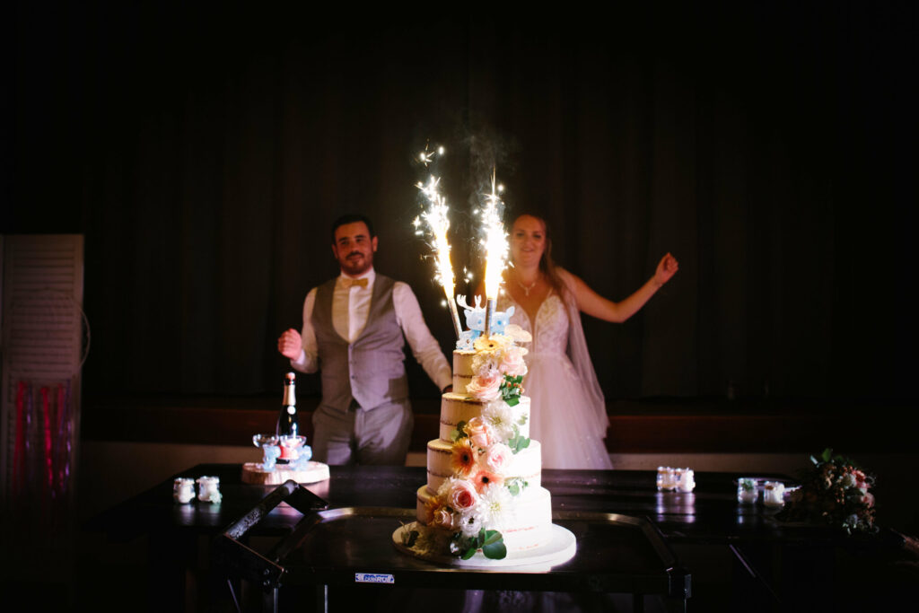 Après une entrée des mariés très ambiancée et en musique, c’est le moment de passer à table et de profiter d’un beau repas en buffet.