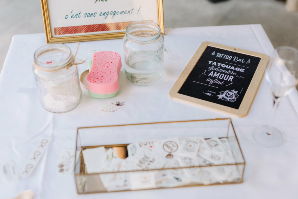 Également, pour une petite touche de folie, pourquoi pas proposer un bar à tatouages ! Vous pouvez proposer des tatouages éphémères qui vont rester durant toute la durée du mariage. De plus, les petits comme les grands auront un souvenir gravé de ce moment !