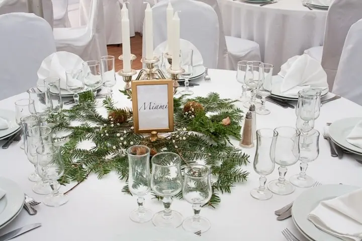 Plongez vos invités dans une immersion hivernale. Optez pour des nuances de gris, du vert sapin, du blanc et un du rouge. Cela fera penser à l’ambiance de Noël. Pour apporter une petite touche d’élégance à votre décoration, pensez à ajouter quelques touches de doré ou d’argenté.
