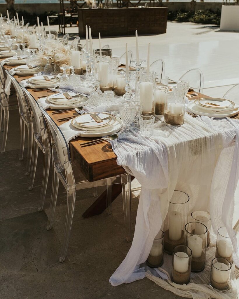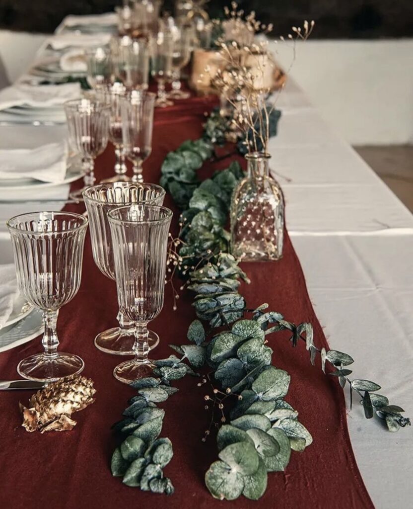 Niveau décoration, votre wedding planer Nord, Mélissa, vous propose d’associer cette couleur chaude avec du blanc cassé ou de beige pour apporter de la lumière. Optez pour mettre des herbes de pampa, du rotin, des branches d’olivier en termes de fleurs. Pour votre table, vous pouvez mettre une nappe terracotta ou alors intégrer la couleur dans des détails subtils : bougies terracotta, verrerie fumée, chemin de table, serviette en tissu rouge foncé ou encore petits vases décoratifs.