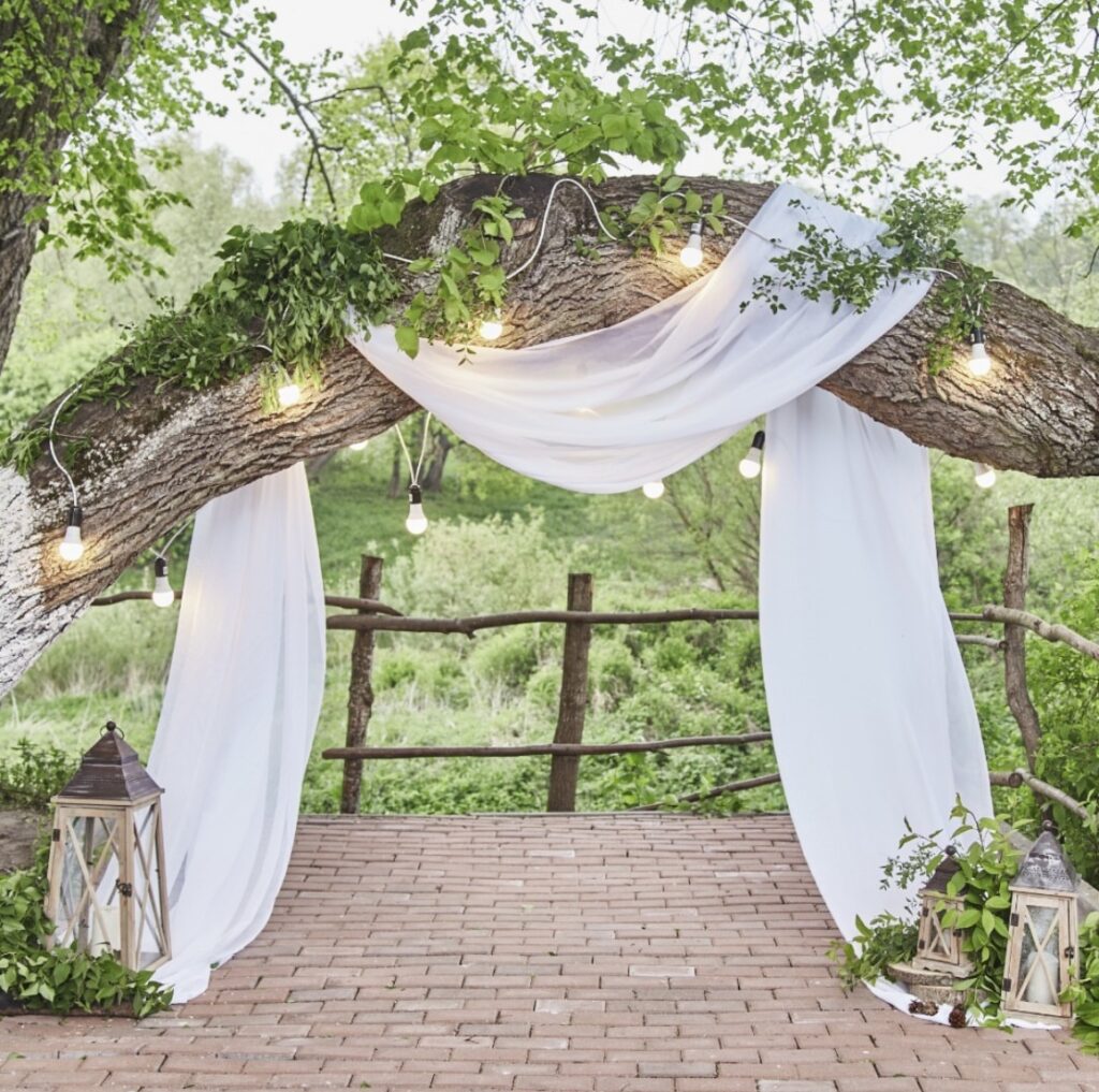 Les drapés seront aussi de plus en plus présents aux mariages de cette saison. Expert en scénographie de mariage, Déco Mariage Le Concept propose aux mariés de louer une gloriette aux drapés de tulles à installer sur leur lieu de réception. Ce kit de décoration s’adapte à toutes les salles et à n’importe quel thème. Une bonne idée pleine de fraîcheur et d’élégance !