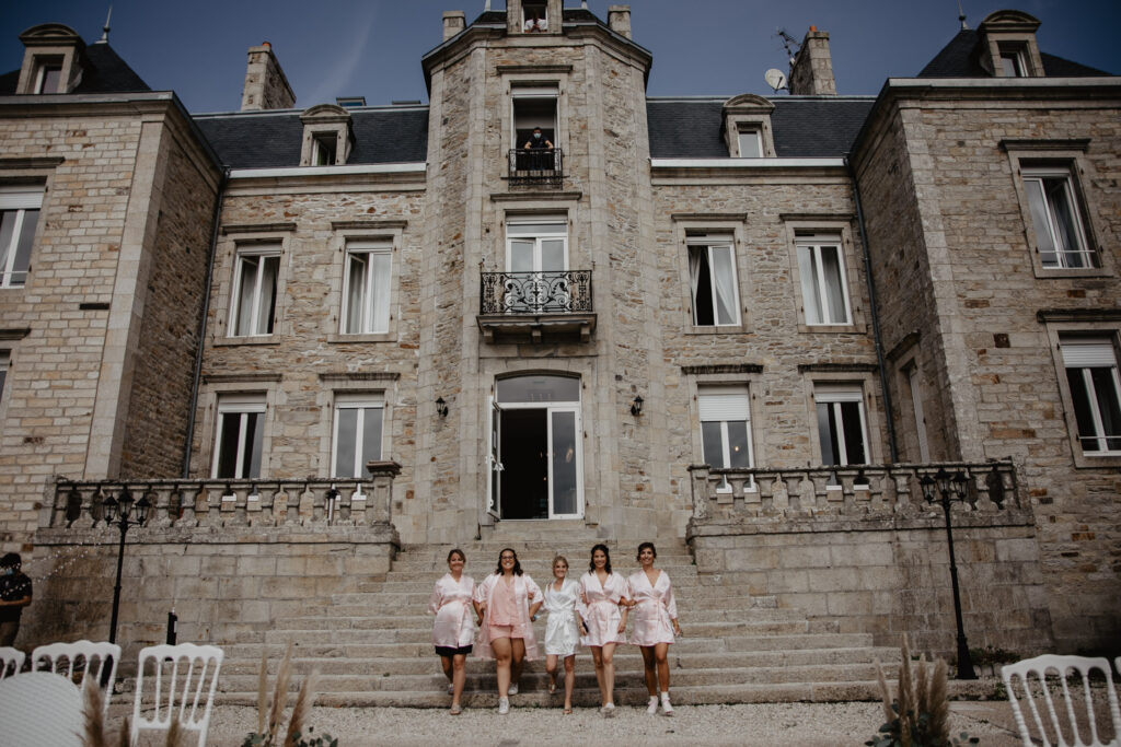 Il est agréable que la maman, les soeurs et les copines soient présentes. Leurs tenues ne sont pas à négliger non plus : robes, peignoirs identiques, en harmonie avec la tenue du matin de la mariée.