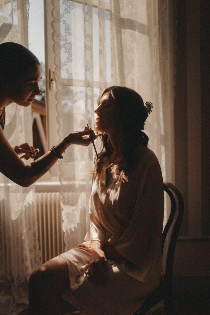 Afin que votre photographe puisse réaliser de superbes images pendant la préparation de la mariée, il est essentiel de choisir une pièce lumineuse et joliment décorée.