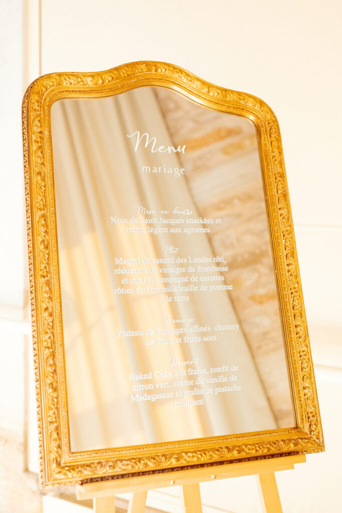 Quelques fleurs blanche et des touches de dorés ont apportés le raffinement nécessaire à cette décoration de mariage Bridgerton.