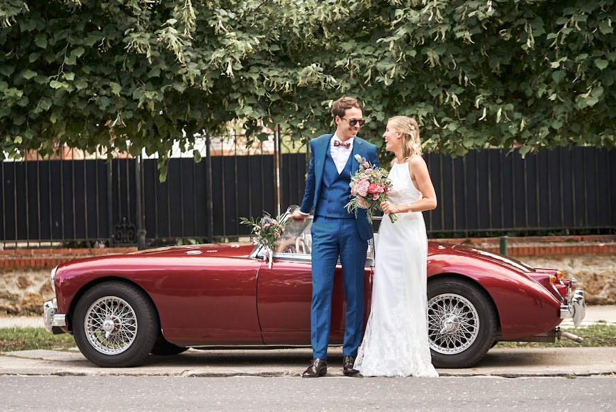 A la fin de la cérémonie, nos mariés sont parti dans leur jolie voiture décapotable et sont allés faire leurs photos de couple. Les photos de groupe ont suivi dans un parc à côté de chez eux.