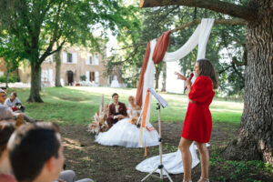Je leur ai écrit une cérémonie sur mesure liant l’émotion, le rire, le partage, la bienveillance et surtout l’émotion. Ils ont pleurés de joie et c’était magique à vivre !