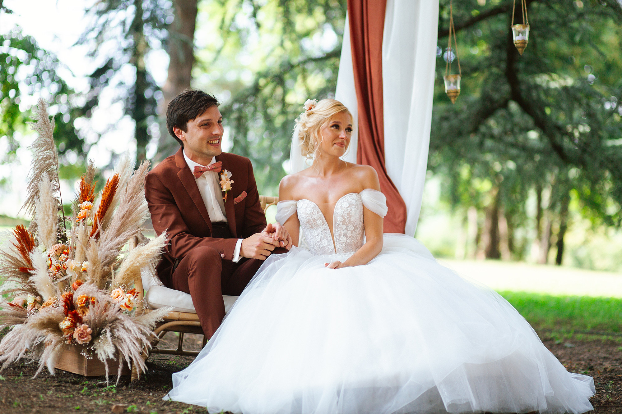 Elle a donc choisi comme thème couleur un mariage terracotta qui s’est décliné en plusieurs teinte allant du nude, au camel au blush ce qui à donné a leur mariage une allure très chaleureuse et cosy.
