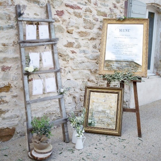 En premier lieu, pour un plan de table avec un thème champêtre pourquoi ne pas utiliser comme support une échelle, une botte de paille ou encore une palette en bois ? De même pour un mariage un peu plus chic, vous pouvez miser sur l’utilisation de miroirs ou alors de plaque de plexiglas pour jouer avec la transparence.