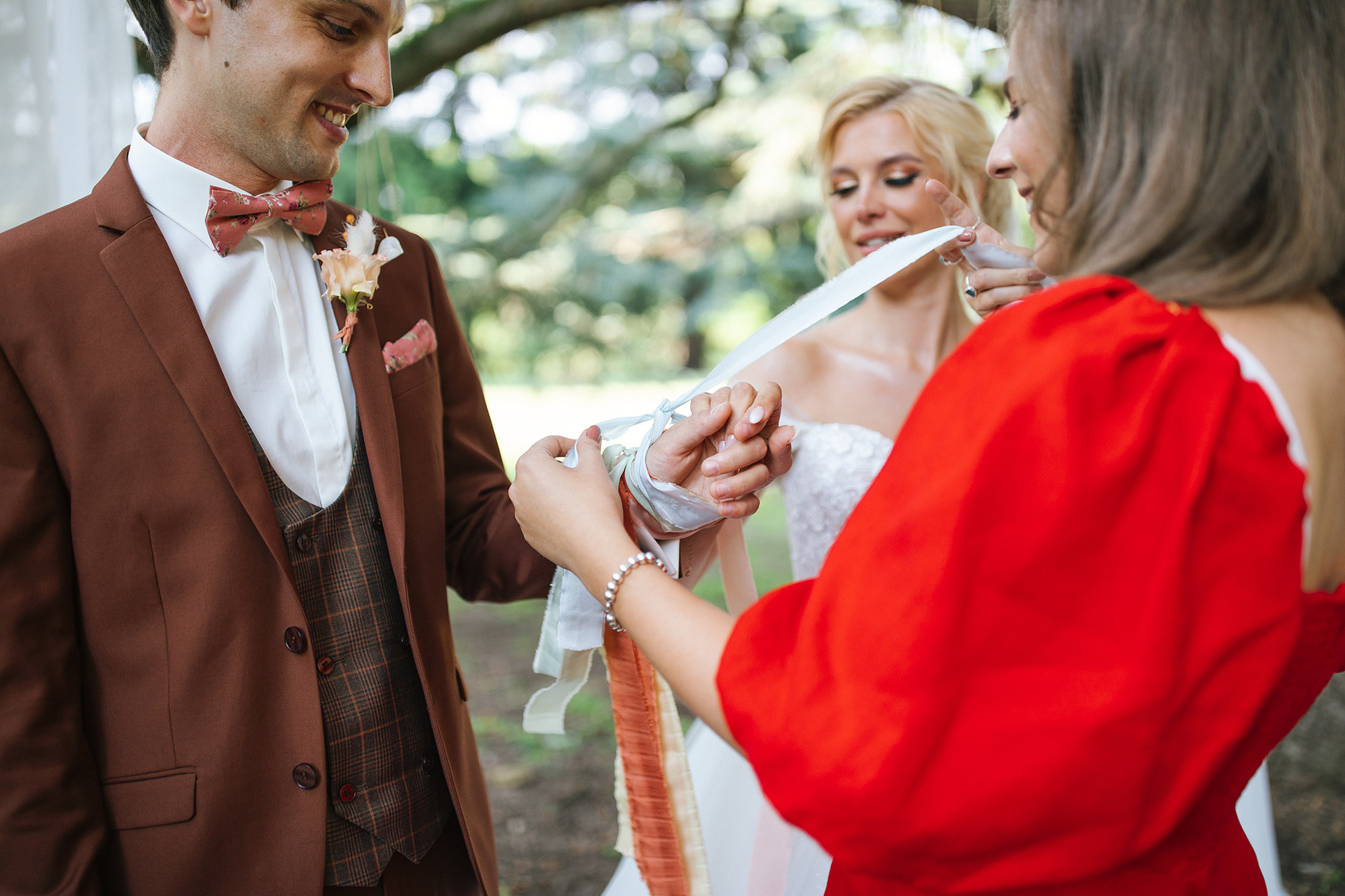Une fois les rubans noués, à la fin du rituel, votre officiante coupera les rubans tout en conservant les nœuds.