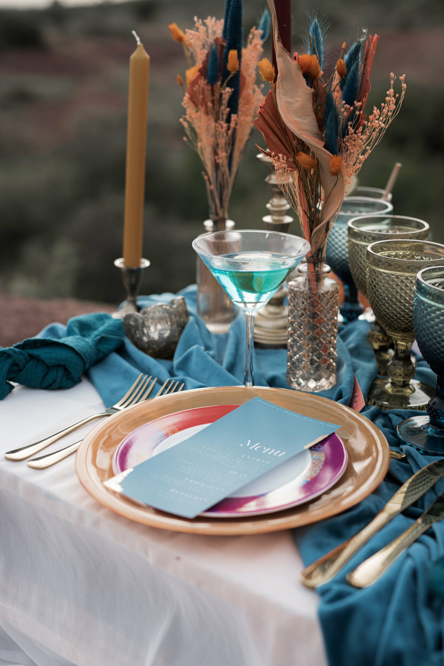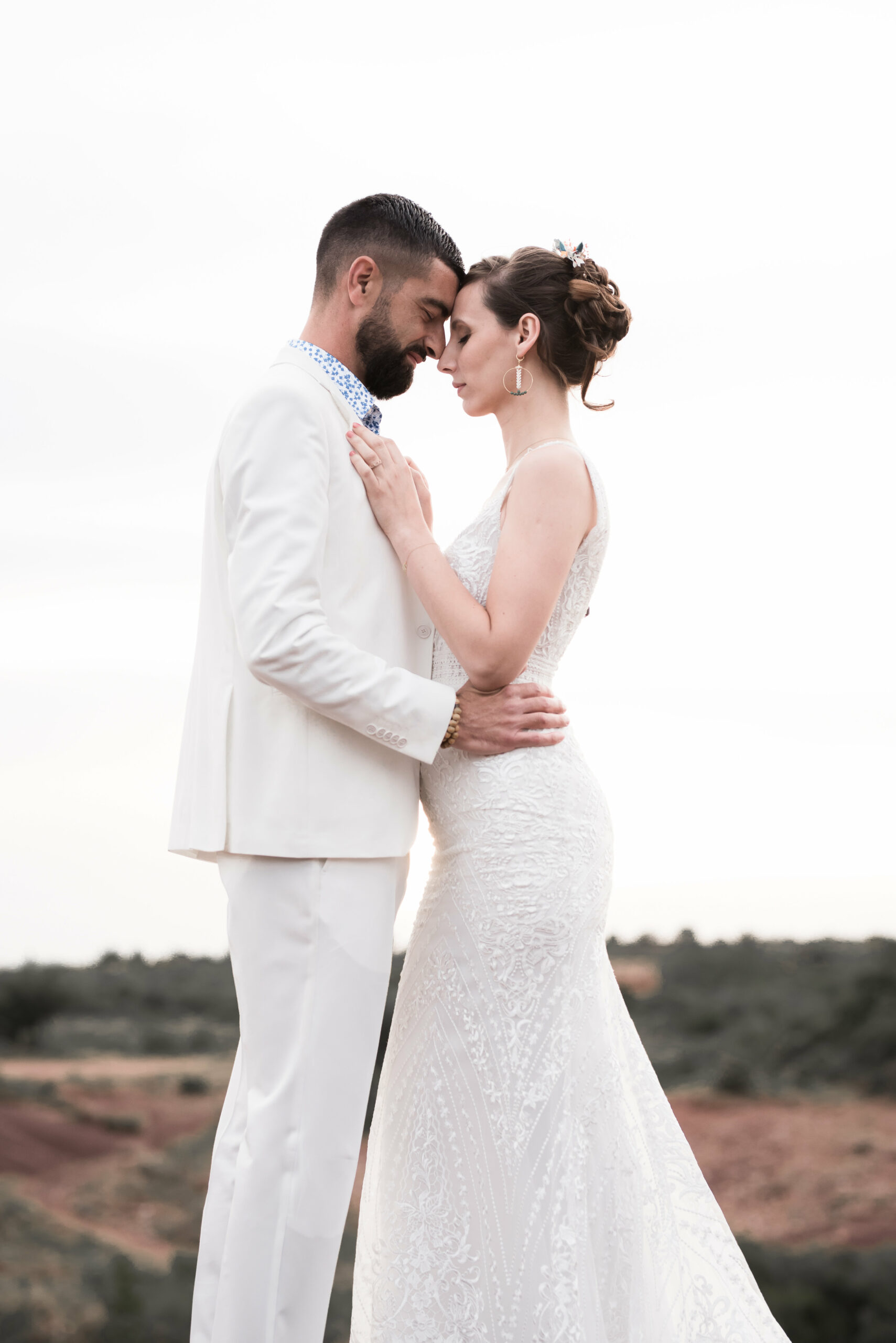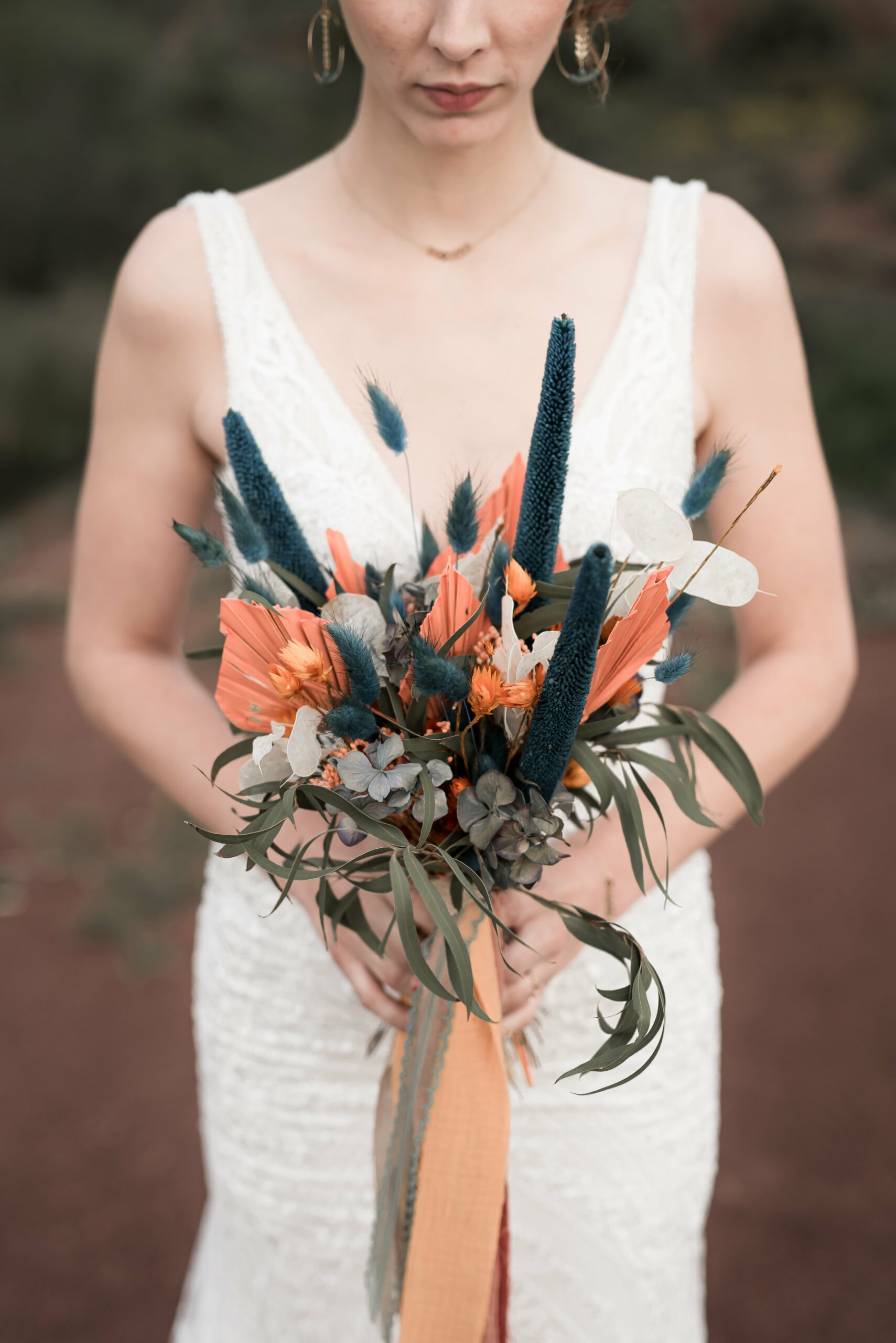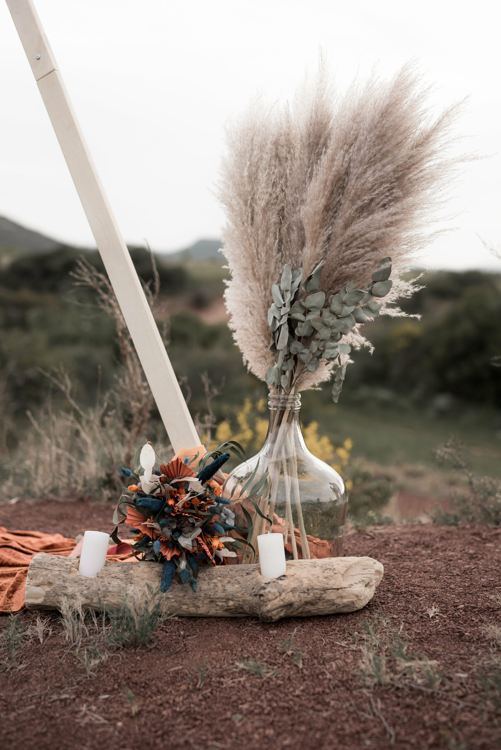 Lorsque nos jeunes mariés nous ont contacter, ils souhaitaient un mariage unique en petit comité au beau milieu de cette nature qu’ils aiment tant. Nous avons commencé à parler décoration. A ce moment là, D Day wedding planner Languedoc à une idée : pourquoi ne pas jouer avec les couleurs complémentaires. Les mariés ont adoré, et de la est parti l’idée d’organiser un jolie elopement dans les tons bleu canard et ocre. Et bien sur dans l’Hérault, qui dit Ocre, dit Lac du Salagou !