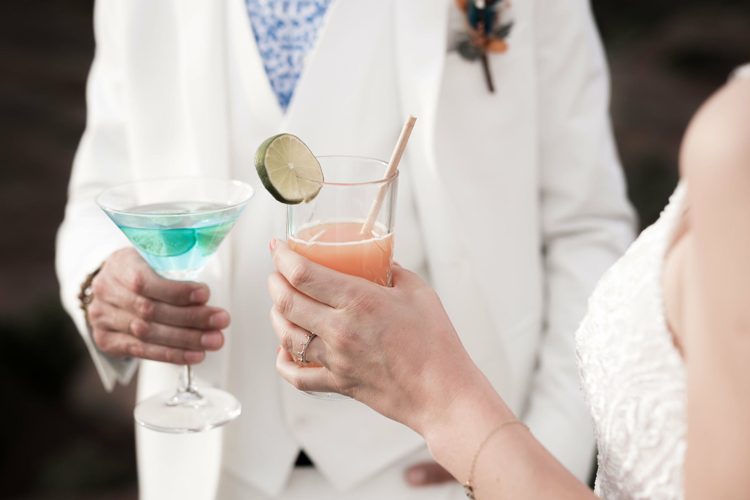 Même si nous étions au beau milieu de la nature, cela reste un mariage. Ils faut donc fêter cela comme il se doit. Nos jeunes mariés ont fait appels à un barman. Le seul impératifs qu’il avait : rester dans le même colorimétrie.