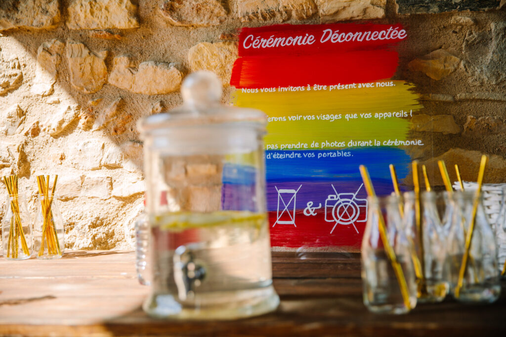 Se déconnecter de ses appareils numériques pendant un mariage, c’est se recentrer sur soi et ceux qui nous entourent, pour vivre pleinement votre union et votre communion avec vos convives. C’est donc tout simplement profiter des gens, des moments, du lieu.. Vivez l’instant présent, rangez vos téléphones.