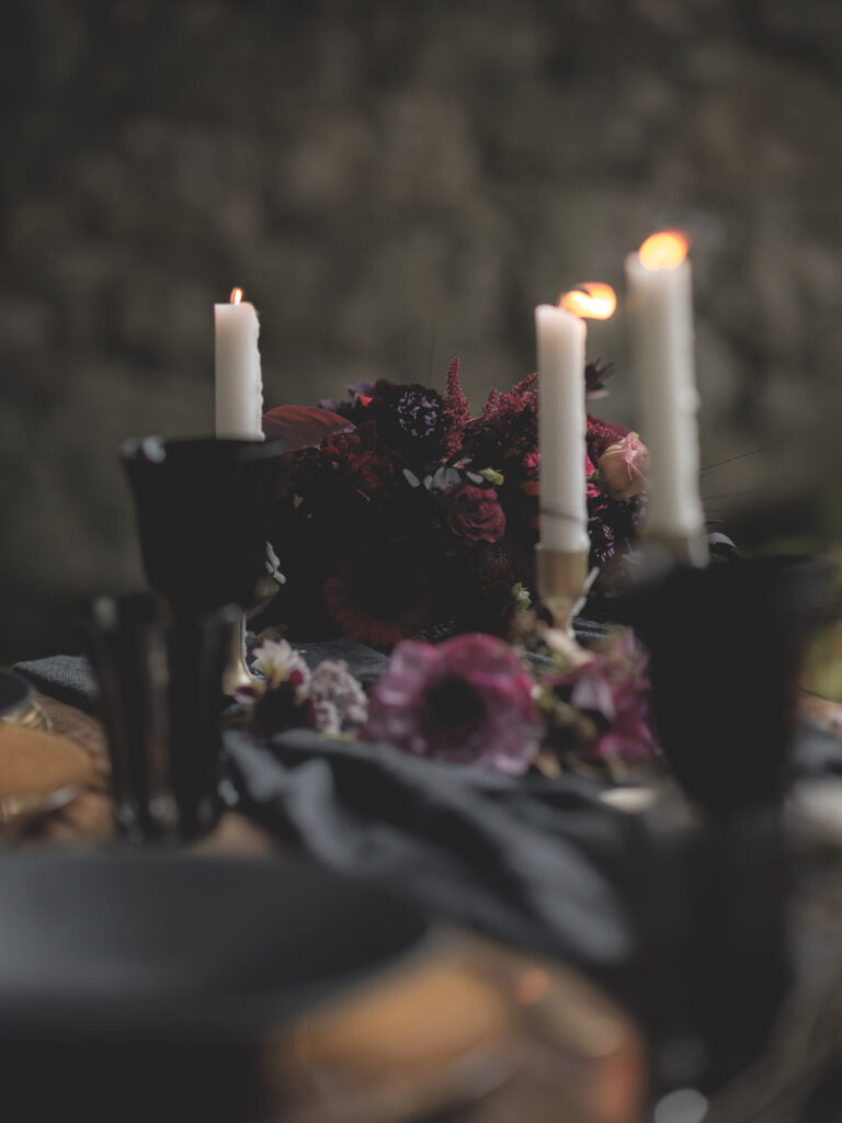 Une fois cette touche de dorée ajouter, vous pouvez mettre en plus des fleurs de couleurs. ici, D Day Wedding Planner la Clusaz vous propose plutôt une touche de violet/rouge. Ces différentes touches de couleurs vous permettrons de mettre en luminère toute la gaïeté de la journée.