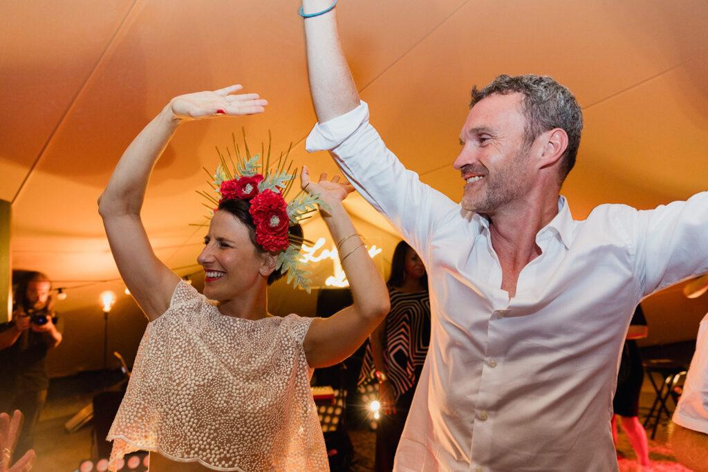 Ils se sont projetés avec un apéritif dinatoire pour avoir un évènement dynamique et festif, ils ont donc continuer leur soirée de leur mariage en Drome sous la tente normade transformer cette fois en piste de danse avec un groupe de musique live