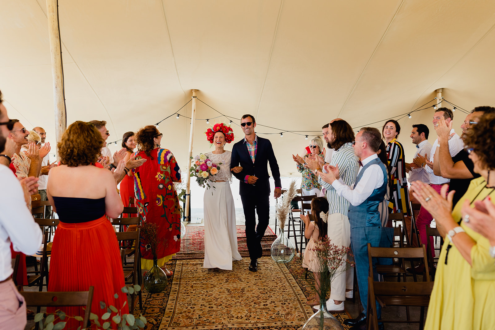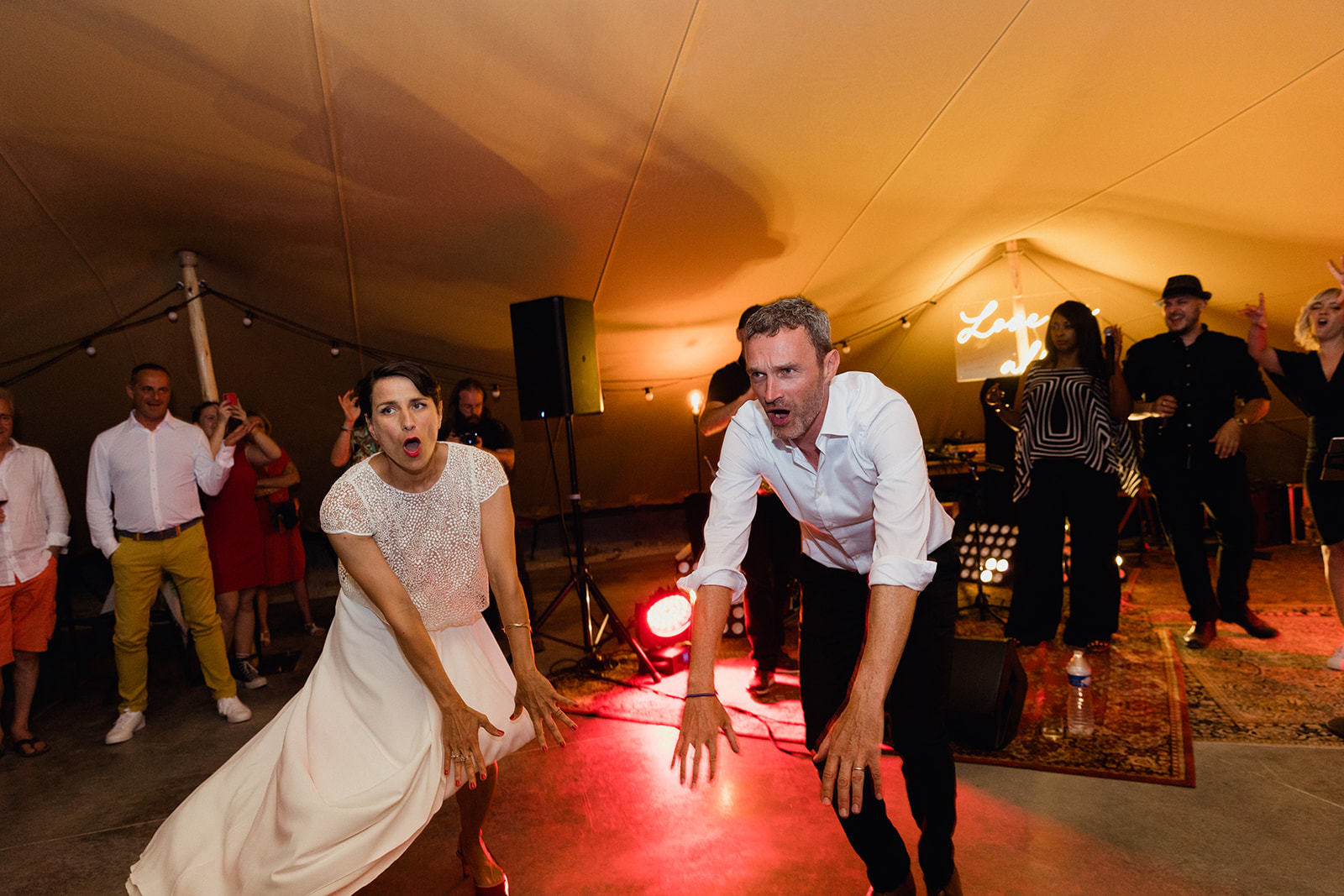 Ils se sont projetés avec un apéritif dinatoire pour avoir un évènement dynamique et festif, ils ont donc continuer leur soirée de leur mariage en Drome sous la tente normade transformer cette fois en piste de danse avec un groupe de musique live